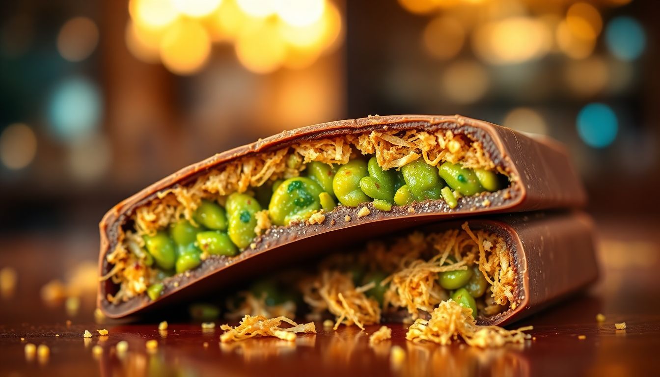 그다음 단계로는 볶아진 카다이프에 피스타치오 스프레드나 타히니 소스를 섞어 밀도를 조절하는 작업이 진행됩니다. 이때 스프레드의 양에 따라 전체적인 칼로리와 당도가 결정되므로 영양 성분을 고려한다면 조절이 필요한 지점입니다. 섞인 반죽은 틀에 얇게 펴 바르거나 초콜릿 쉘 안에 채워 넣는 방식으로 형태를 잡게 됩니다.