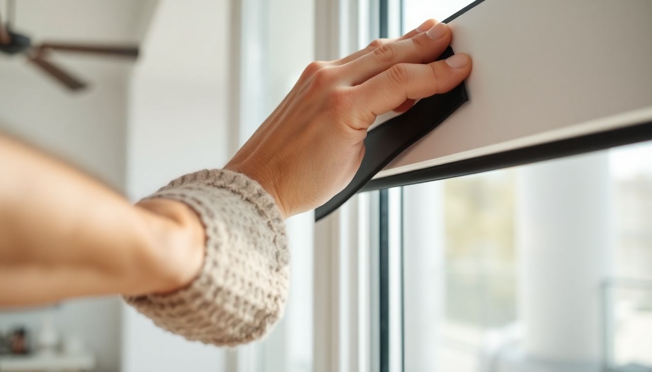 여섯 번째 단계는 압착 공정으로 손가락이나 전용 도구를 활용해 부착된 면을 강하게 눌러 접착 성분이 창틀 표면에 완전히 밀착되도록 마감 처리를 진행합니다.